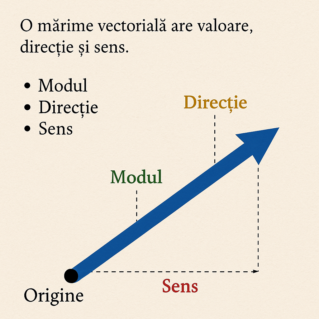 În viața de zi cu zi și în fizică întâlnim mărimi care nu pot fi descrise complet doar printr-un număr. Acestea se numesc mărimi vectoriale. Spre deosebire de mărimile scalare, care au doar valoare numerică și unitate de măsură (cum ar fi masa sau temperatura), mărimile vectoriale au valoare, direcție și sens. Exemple de mărimi vectoriale sunt viteza, forța, deplasarea, accelerația sau momentul de forță.