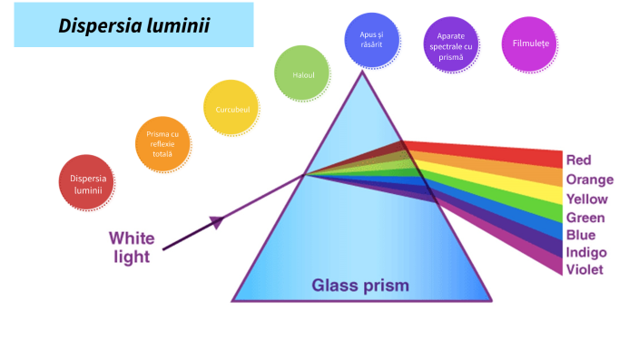 - Prisme și lentile – în instrumentele optice precum telescoapele sau microscoapele, dispersia luminii este folosită pentru a separa culorile și a studia detaliile fine.