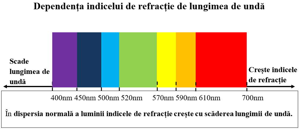 Dispersia luminii este fenomenul prin care lumina albă se descompune în culorile sale componente atunci când trece printr-un mediu transparent, cum ar fi apa, sticla sau cristalele. Acest fenomen se datorează faptului că viteza luminii depinde de lungimea de undă a radiației, ceea ce face ca diferitele culori să se refracteze (schimbe direcția) în mod diferit.